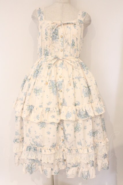 LUCKY FLOWER / Tower of Flower ティアードドレス アイボリー×サックス O-26-04-09-006-LO-OP-IG-OS