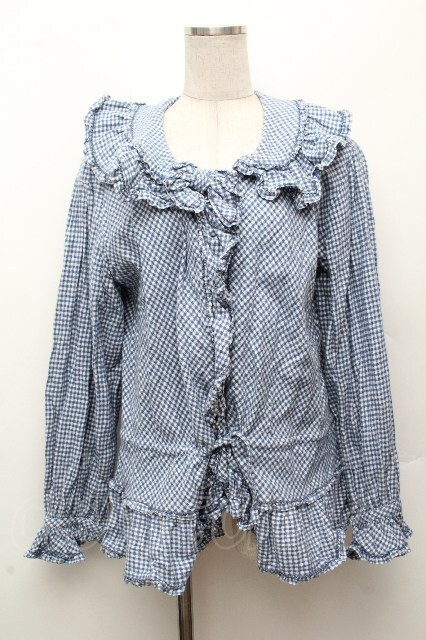 PINK HOUSE / ギンガムチェックフード付きブラウス ブルーx白 S-26-04-09-014-LO-BL-AS-ZS [2100020000038581-S-26-04-09-014-LO-BL-AS-ZS]