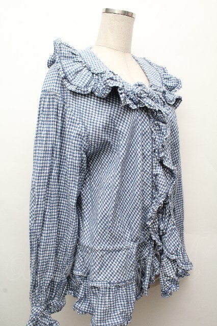PINK HOUSE / ギンガムチェックフード付きブラウス ブルーx白 S-26-04-09-014-LO-BL-AS-ZS