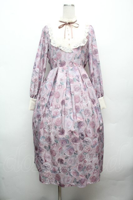 axes femme / ラヴィアンローズ柄ワンピース F ピンク S-26-04-09-029-AX-OP-TE-ZS