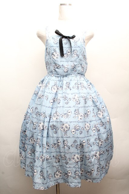 axes femme kawaii / アリス柄ワンピース サックス S-26-04-09-039-AX-OP-HR-ZS