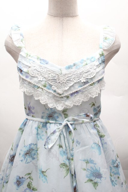 axes femme / 水彩花柄キャミワンピース M サックス S-26-04-09-042-AX-OP-TE-ZS