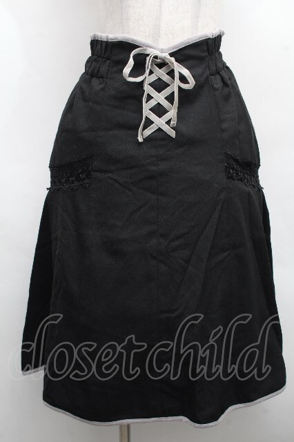 axes femme / フロント編上レース切替スカート 黒 S-26-04-09-055-AX-SK-AS-ZS