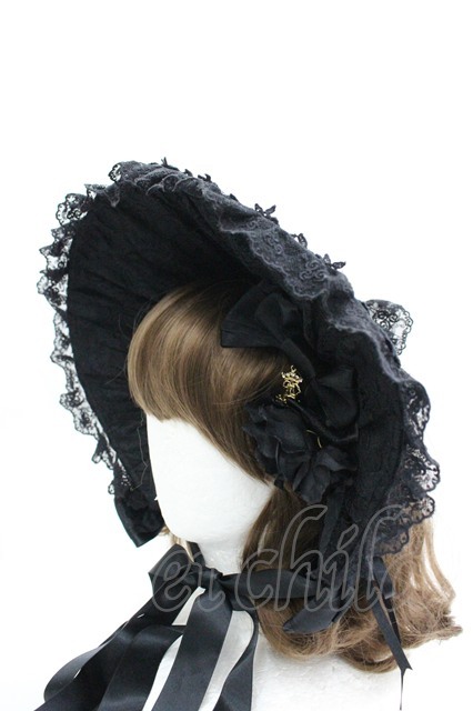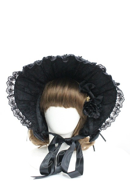 ALICE and the PIRATES / レースリボン薔薇ハーフボンネット 黒 I-26-04-08-059-PA-AC-SA-ZI