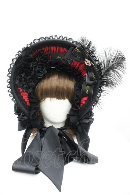 Triple fortune / ローズリボンボンネット 黒×赤 I-26-04-08-062-EL-AC-TE-ZI