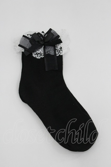 Hoshibako Works / レースリボンソックス 黒X白 I-26-04-08-128-LO-ZA-SA-ZI [2100060000049270-I-26-04-08-128-LO-ZA-SA-ZI]