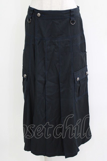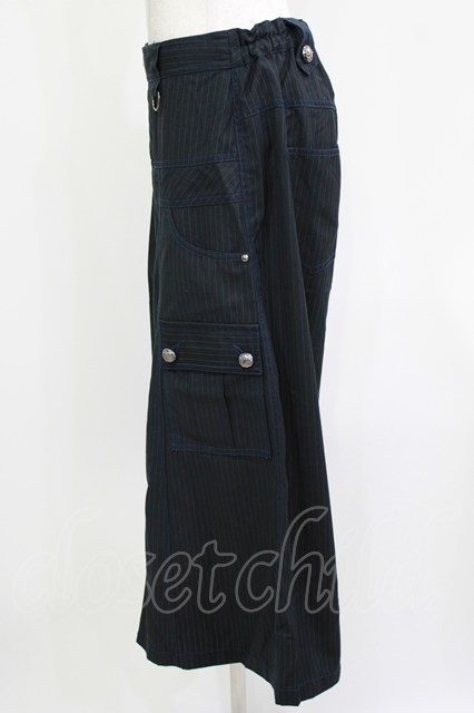 ALGONQUINS / レイヤード風ストライプパンツ 黒×青 H-26-04-14-019-AL-PA-KB-ZH