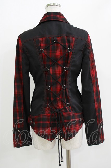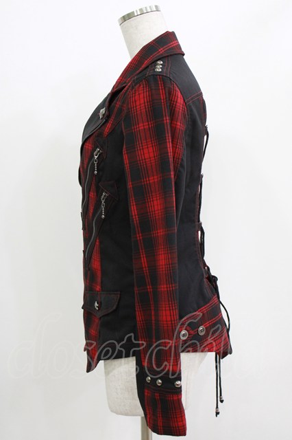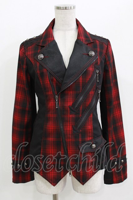 ALGONQUINS / チェック切替ライダースジャケット 黒×赤 H-26-04-14-011-AL-JA-KB-ZH [2100030000091703-H-26-04-14-011-AL-JA-KB-ZH]
