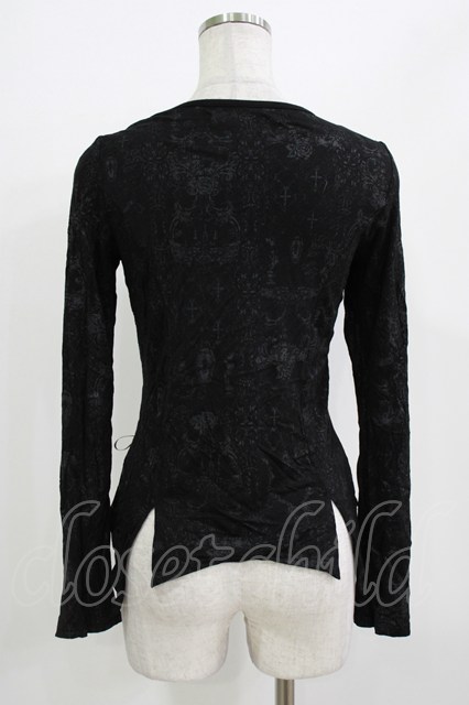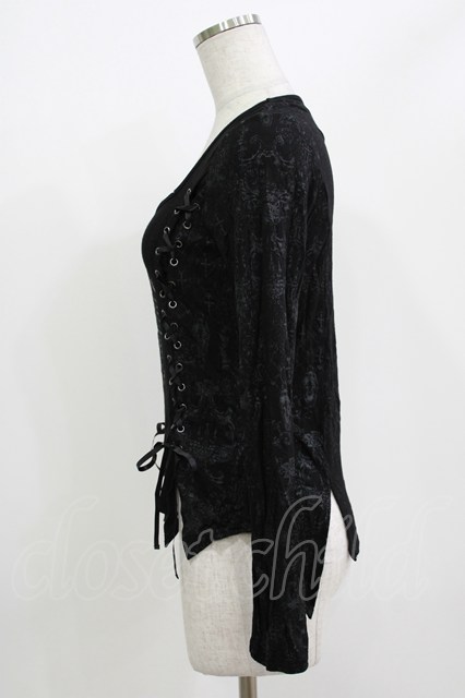 h.NAOTO / プリント切替レースアップカットソー ブラック H-26-04-14-052-HN-TO-KB-ZH [2100030000091664-H-26-04-14-052-HN-TO-KB-ZH]