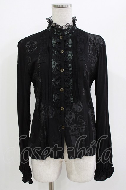 STEAM / プリント切替ピンタックブラウス ブラック H-26-04-14-028-HN-BL-KB-ZH [2100030000091701-H-26-04-14-028-HN-BL-KB-ZH]