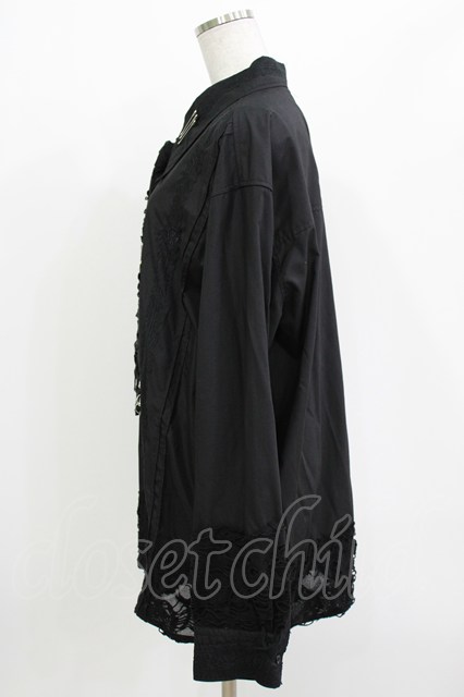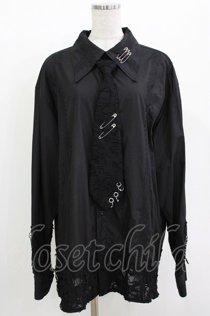 DimMoire / タイ付きダメージ切替シャツ ブラック H-26-04-14-032-0-BL-KB-ZH