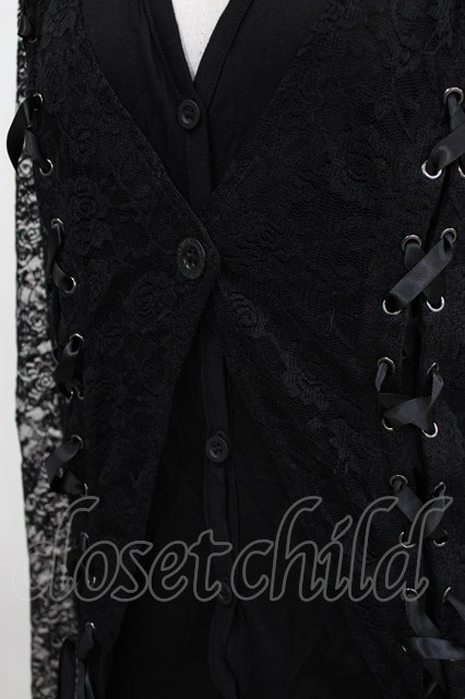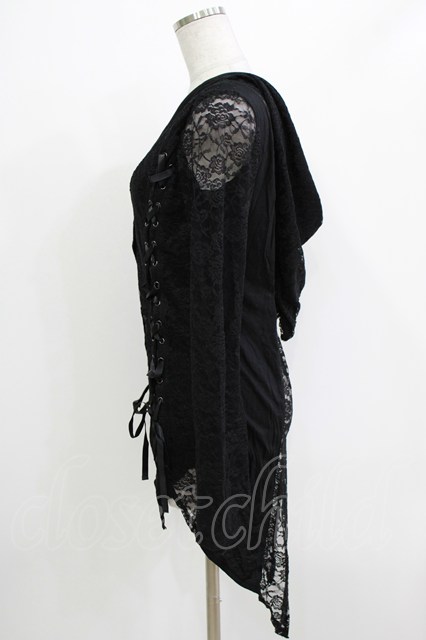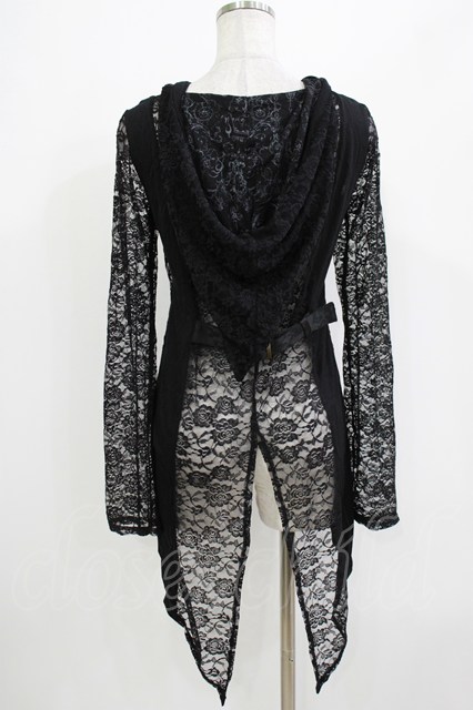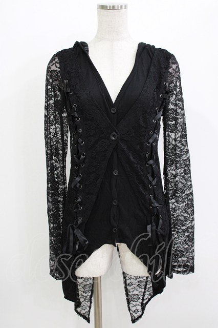 h.naoto Blood / レイヤード風レース切替フードカーディガン 黒 H-26-04-14-053-HN-TO-KB-ZH