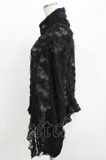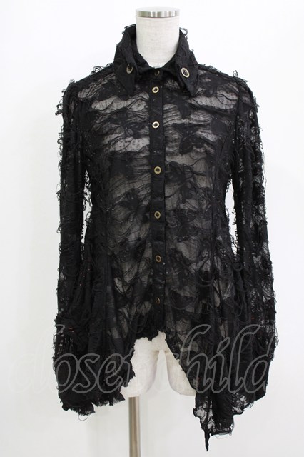 DARK RED RUM / ダメージカットアシメシャツ ブラック H-26-04-14-040-HN-BL-KB-ZH [2100030000091658-H-26-04-14-040-HN-BL-KB-ZH]