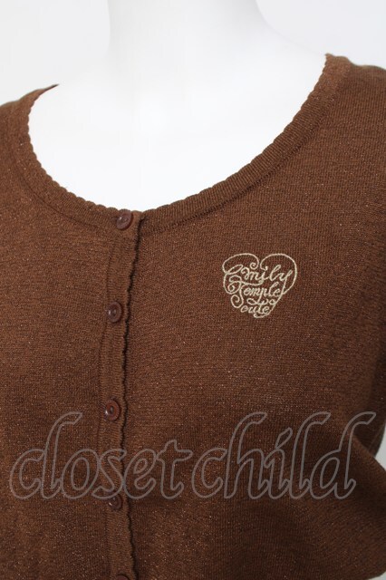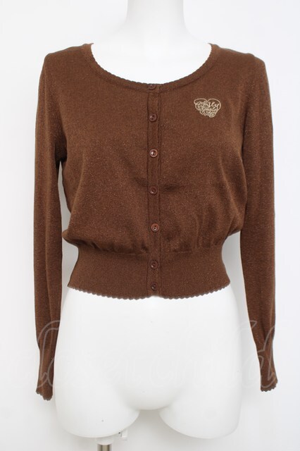 Emily Temple cute / ハートロゴ刺繍ラメニットカーディガン M ブラウン Y-26-04-15-054-ET-TO-SZ-ZY [2100070000064548-Y-26-04-15-054-ET-TO-SZ-ZY]