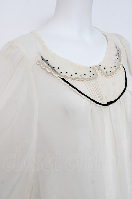 franche lippee black / 襟ドットBIGブラウス M オフシロ Y-26-04-15-071-LO-BL-SZ-ZY