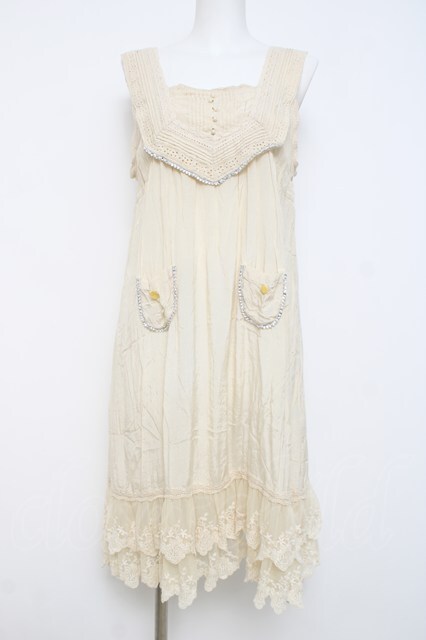 Cherir la femme / ビーズ使いポケットワンピース M 生成り Y-26-04-15-074-LO-OP-SZ-ZY