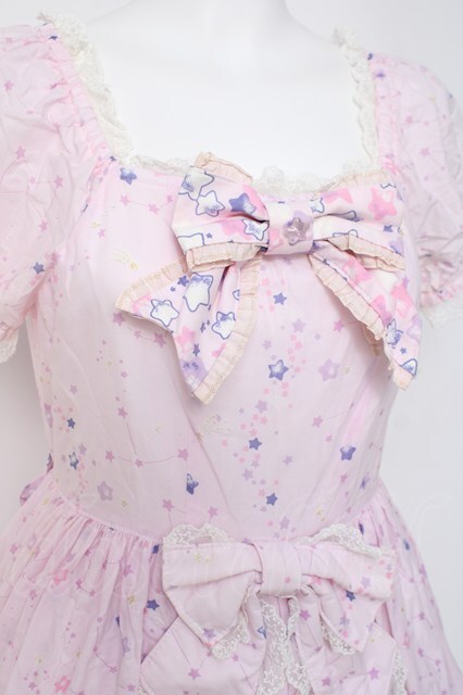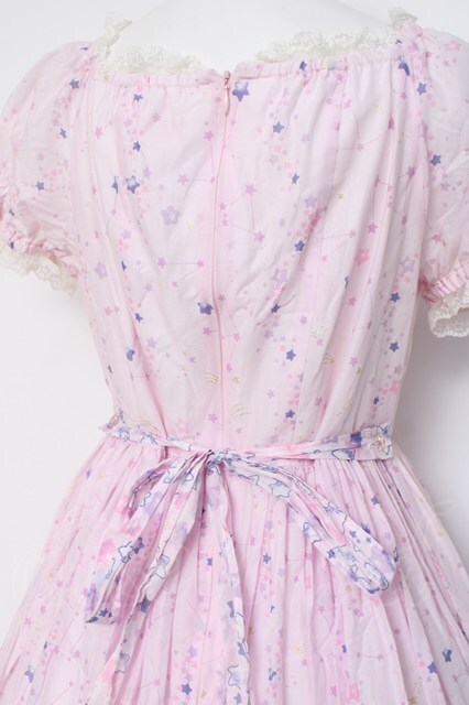 BABY, THE STARS SHINE BRIGHT / キラキラ星座とコンペイトウのお星様柄ワンピース ピンク×オフホワイト Y-26-04-15-096-BA-OP-SZ-ZY