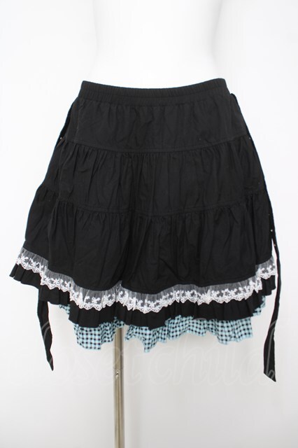 PUTUMAYO / ベルト付きチェック切替スカート 黒 Y-26-04-15-108-PT-SK-SZ-ZY
