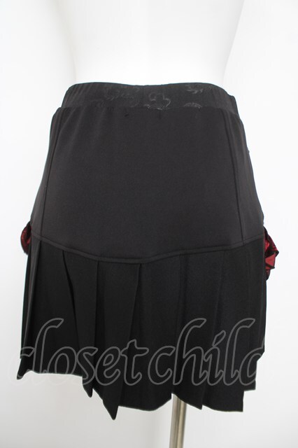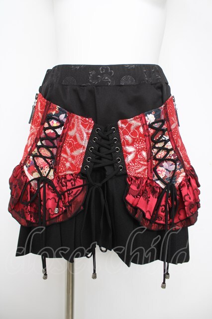 Qutie Frash / 和柄コルセット風プリーツスカート 黒×赤 Y-26-04-15-109-QU-SK-SZ-ZY [2100070000041362-Y-26-04-15-109-QU-SK-SZ-ZY]