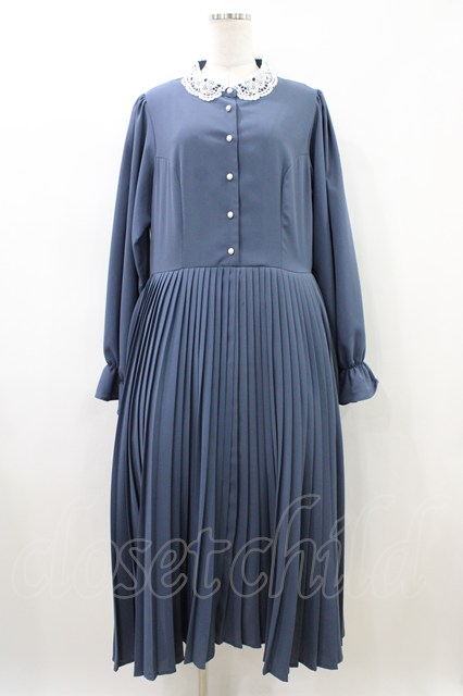 m petit by misako / AM*レースエリプリーツワンピース LL ブルー H-26-04-15-029-LO-OP-NS-ZH
