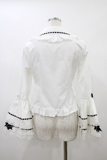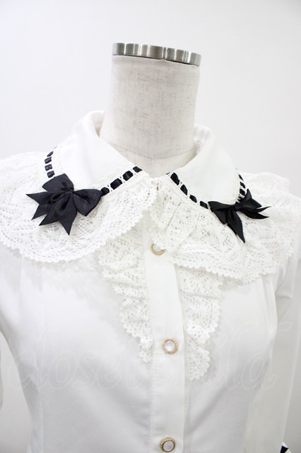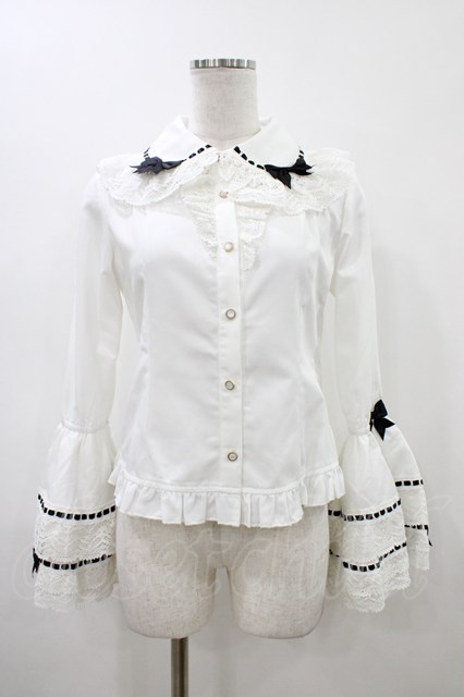 To Alice / リボンデコ姫袖ブラウス S 白×黒 H-26-04-15-047-LO-BL-YZ-ZH [2100030000091420-H-26-04-15-047-LO-BL-YZ-ZH]