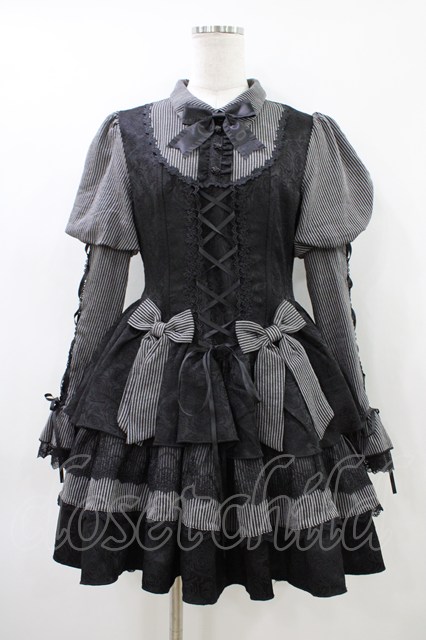 To Alice / ストライプレイヤード風ワンピース M ブラック×グレー H-26-04-15-032-LO-OP-YZ-ZH
