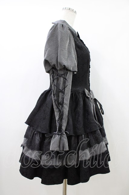 To Alice / ストライプレイヤード風ワンピース M ブラック×グレー H-26-04-15-032-LO-OP-YZ-ZH [2100030000091419-H-26-04-15-032-LO-OP-YZ-ZH]