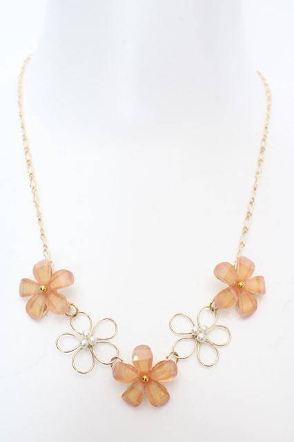 axes femme / お花ビジューネックレス ゴールド×ピンク O-26-04-09-1049-AX-AC-IG-OS