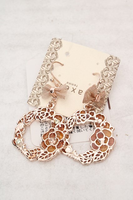 axes femme / リース風カラーピアス ピンクゴールド O-26-04-09-1082-AX-AC-IG-OS
