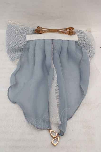 Amavel / リボンパーツ付レースリボンバレッタ アオxシロ O-26-04-09-1096-CA-ZA-YM-OS
