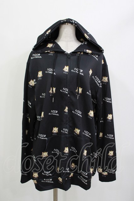 NieR Clothing / 総柄ZIPパーカー 黒 H-26-04-15-1014-PU-TO-KB-ZH