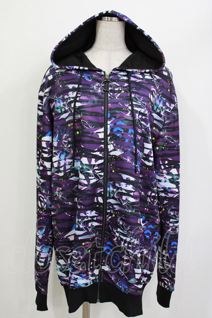 NieR Clothing / 総柄ZIPパーカー 黒 H-26-04-15-1015-PU-TO-KB-ZH