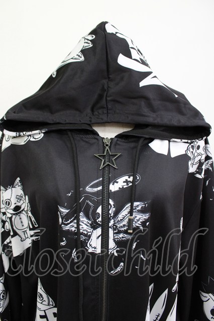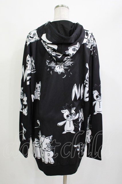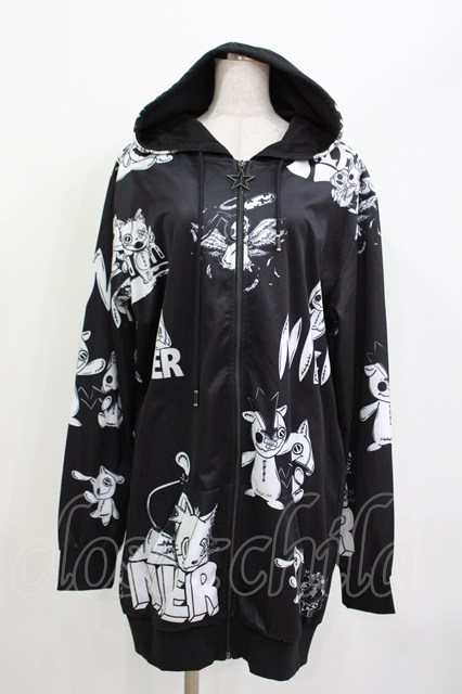 NieR Clothing / 総柄ZIPパーカー 黒×白 H-26-04-15-1019-PU-TO-KB-ZH