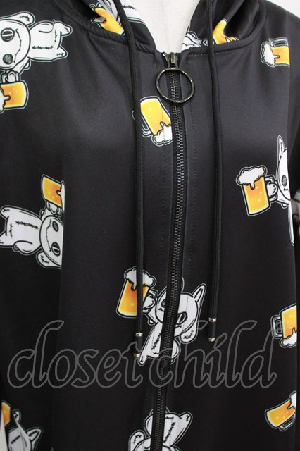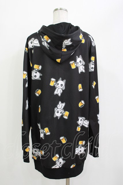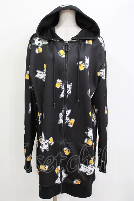 NieR Clothing / 総柄ZIPパーカー 黒×ビールNierちゃん H-26-04-15-1020-PU-TO-KB-ZH