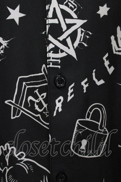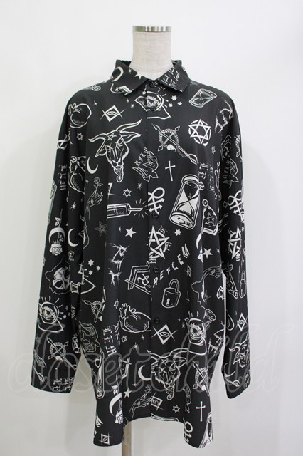 REFLEM / オカルト総柄シャツ モノクロ H-26-04-15-1008-PU-BL-KB-ZH