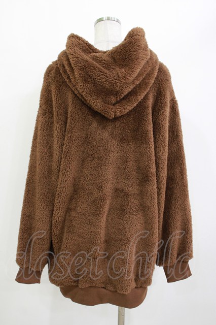 NieR Clothing / 軽量×防寒ふわもこブラウンプルオーバーパーカー【刺繍LOGO】 ブラウン H-26-04-15-1031-PU-TO-KB-ZH