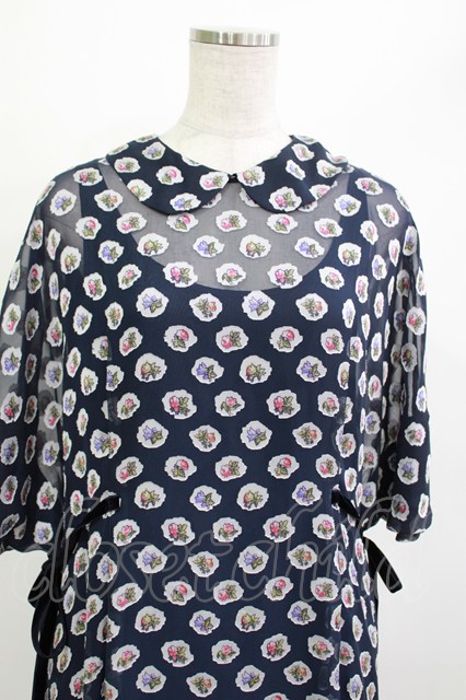 Jane Marple Dans Le Salon / Pieces of Flowersラウンドカラードレス ネイビー H-26-04-15-1003-JM-OP-KB-ZH [2100000002256936-H-26-04-15-1003-JM-OP-KB-ZH]
