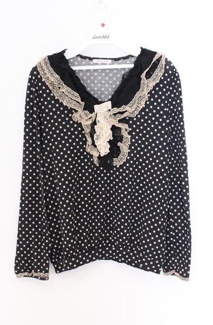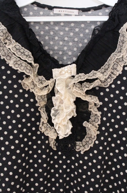 axes femme / リボンレースドットカットソー M クロ O-26-04-10-020-AX-TO-IG-OS