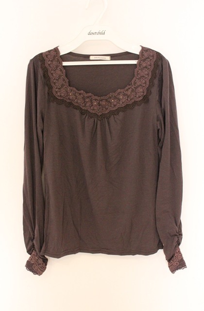 axes femme / フラワーレース使いインナーカットソー M ブラウン O-26-04-10-023-AX-TO-IG-OS