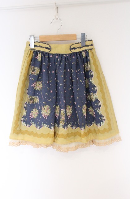 axes femme / 鳥かご×メルヘン柄スカート ネイビー×イエロー O-26-04-10-040-AX-SK-IG-OS [2100080000079632-O-26-04-10-040-AX-SK-IG-OS]
