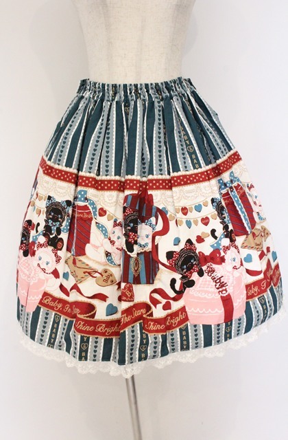 BABY,THE STARS SHINE BRIGHT / ねこくみゃちゃんのHappy Meow Meow Present柄スカート グリーン O-26-04-10-057-BA-SK-OW-OS