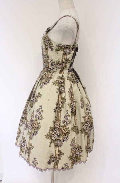 Innocent World / ストライプロココローズジャンパースカート M(94cm丈) 生成り×ラベンダー O-26-04-10-050-IW-OP-IG-OS