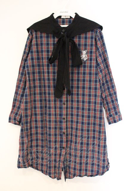 Drug Honey / スケルトンテディ刺繍セーラーワンピース ブルーチェック×クロ O-26-04-11-018-PU-OP-IG-OS [2100080000079473-O-26-04-11-018-PU-OP-IG-OS]