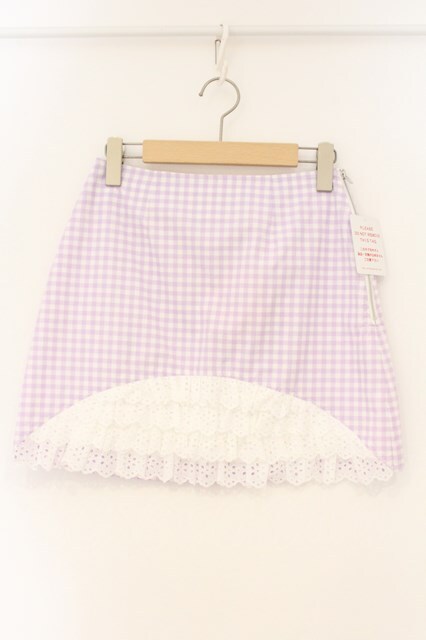 Katie / レース切り替えギンガムスカート XS ラベンダー O-26-04-11-036-LO-SK-YM-OS