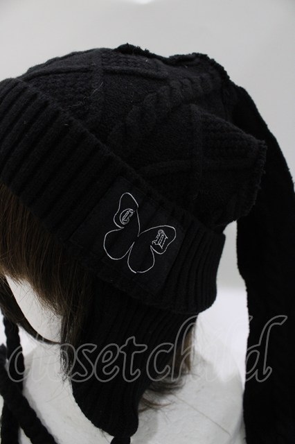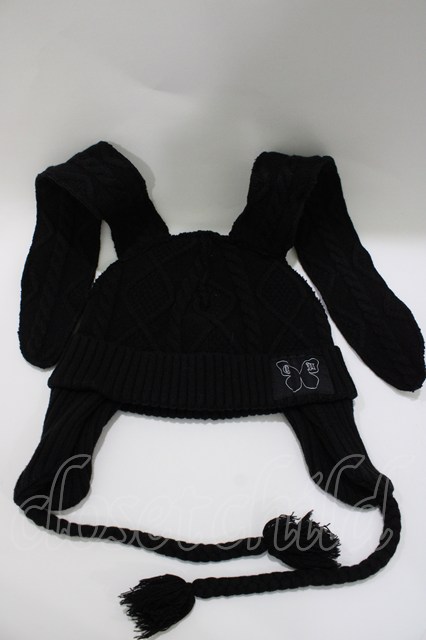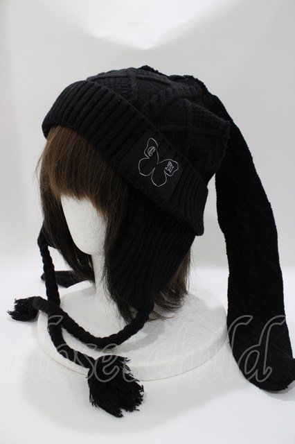 Candy Stripper / CABLE BUNNY EAR ビーニー ブラック H-26-04-16-1040-PU-AC-KB-ZH