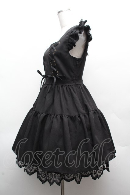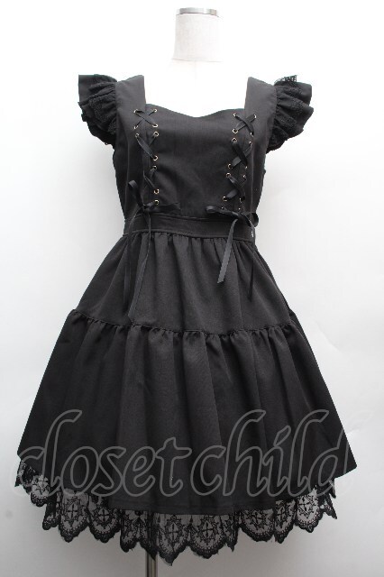 NIBBLE POISON / クロスレースフリルミニワンピース 黒 S-26-04-10-040-0-OP-HR-ZS