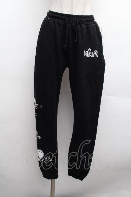 NieR Clothing / プリントスウェットパンツ 黒 S-26-04-10-060-PU-PA-HR-ZS