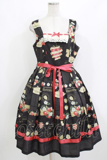 Miss Cube(海外ロリータブランド) / Strawberryジャンパースカートセット XL ブラック H-26-04-16-001-PU-OP-NS-ZH