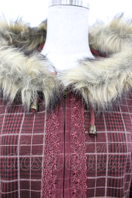 axes femme / グレンチェックパーカー M アカ I-26-04-10-124-AX-TO-SA-ZI