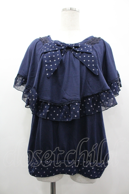 axes femme / ラメドットリボンフリル半袖カットソー ネイビー I-26-04-10-123-AX-TO-SA-ZI [2100060000039829-I-26-04-10-123-AX-TO-SA-ZI]